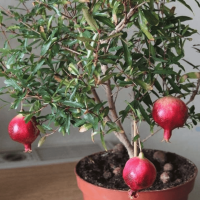 Комнатный гранат Рубин - это небольшое растение, достигающее в высоту не более 1 м. Растение вступает в плодоношение на 3-4 год после посадки. Плодов завязывается немного, но они довольно крупные, 5 см в диаметре, приятного вкуса, легко отдают сок.