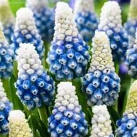 Но это только в том случае, если вы решите купить луковицы мускари Маунтайн Леди. Соцветия этого невысокого весеннего растения состоят из нескольких десятков миниатюрных «бочоночков-колокольчиков», внутрь которых заглянуть невозможно даже в период полного роспуска. Почему? Да потому что края их бутонов-юбочек невероятно сужены. А что с расцветкой? Она просто потрясающая! Начинается палитра красок насыщенно-синим и заканчивается бело-розовато-сиреневым оттенком.